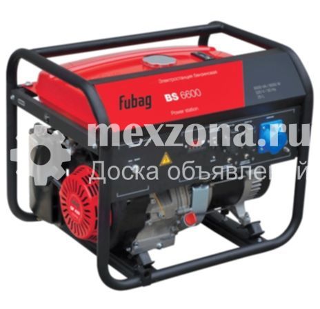 Бензиновая электростанция Fubag BS 6600 предназначена для непродолжительных работ на производстве и электроснабжения в доме. Технические характеристики: номинальная мощность 6.0 кВт, максимальная мощность 6.5 кВА, тип генератора синхронный, двигатель 4-х тактный OHV, мощность двигателя 10.9 л.с., стартер ручной, бак 25 л, вид топлива бензин АИ-92, расход топлива ~3,3 л/час (при 75% нагрузке), время непрерывной работы 7.5 ч., защита от перегрузок, охлаждение воздушное, две розетки напряжением 220 В, 16А, частота 50 Гц, класс защиты IP 23, уровень шума 97 дБ, габариты 700x530x570 мм, вес 80 кг.