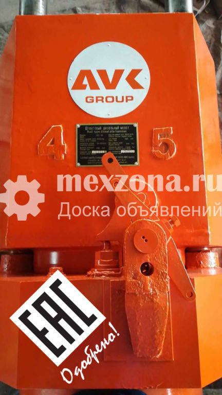 Продается дизельный штанговый молот DD-45 производство КНРМасса ударной части кг 4 500Энергия удара (max)кДж 120Количество ударов в минуту уд/мин 35-50Масса молота кг 7 300Расход топлива л/чи 14Масса забиваемой сваи (max) кг 10 000Максимальный ход ударной части мм 3000Коэффициент сжатия ед 22