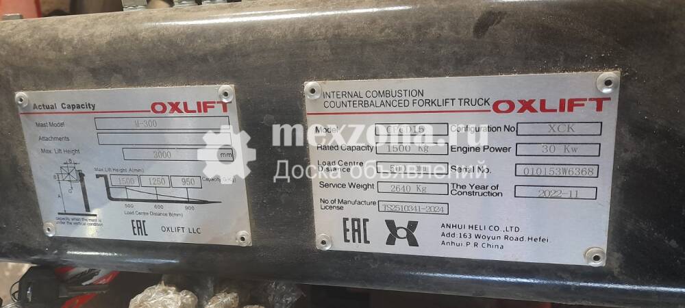 | Грузоподъемность автопогрузчика | 1.5 т |