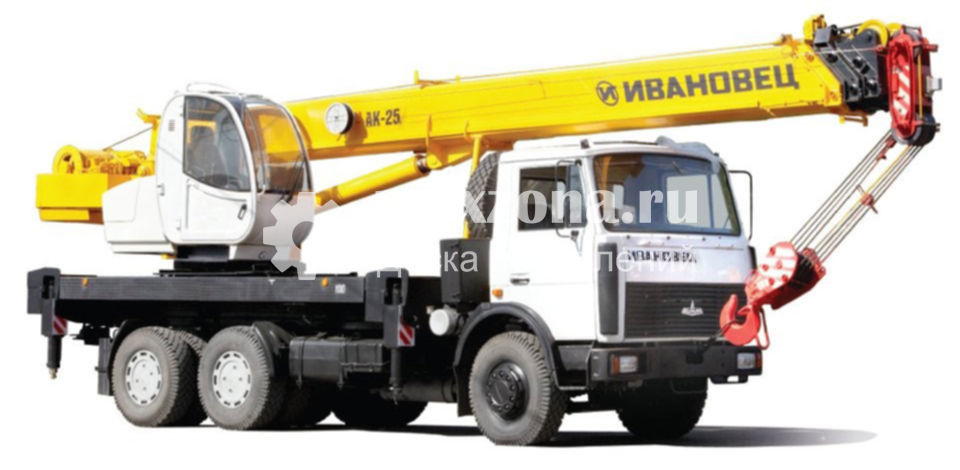 Кран 25 тонн Ивановец Грузоподъемность - 25 тонн Длина стрелы - 21 метр Цена аренды: 1250 руб час; от 6000 руб смена