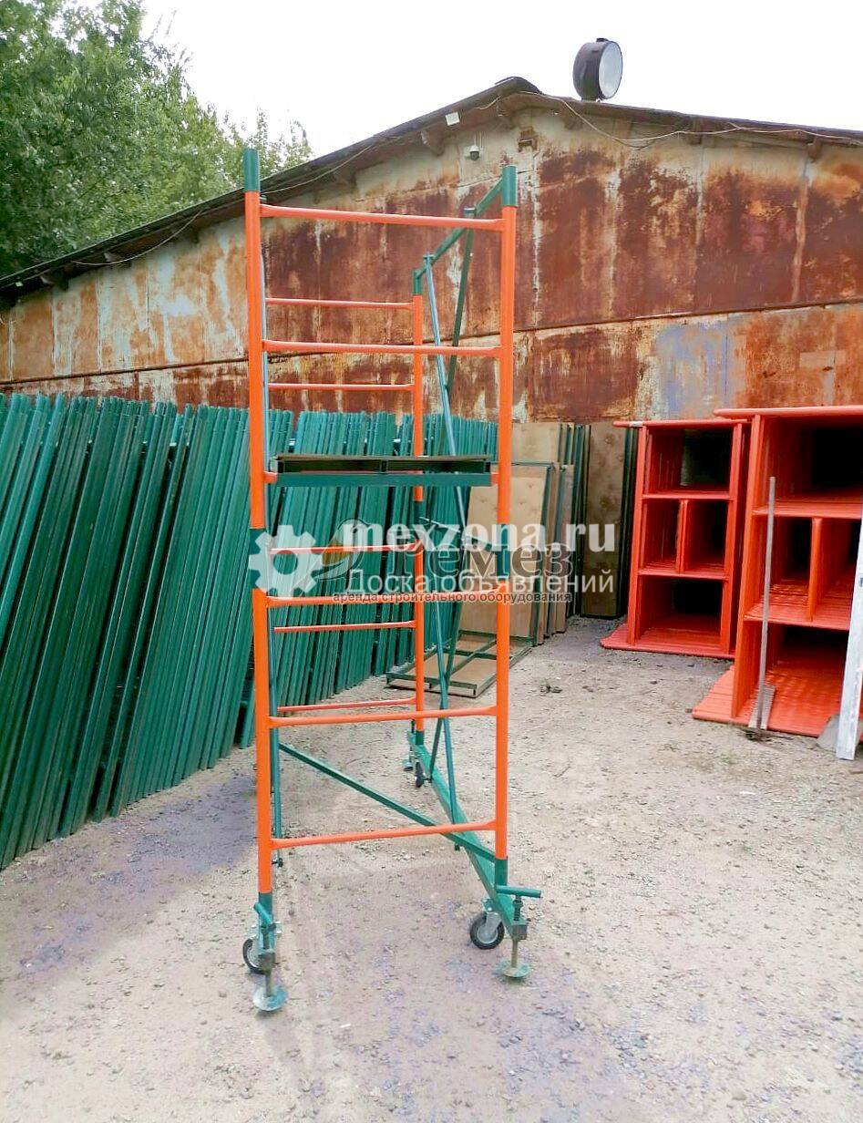 Сдаём в аренду вышки-туры со склада в Ростове-на-Дону. Есть доставка и самовывоз. Вышки-туры строительные состоят из передвижного основания на колёсах и вертикальной конструкции из металлических секций, размещённых друг над другом. Характеристики вышки-туры: Размер рабочей площадки 0,7х1,6м. Максимальная высота вышки общая 7,5м (базовый блок + 5 наборных секций). Высота одной секции 1,2 м. Нормативная поверхностная нагрузка 250 кгс/м2. Шаг установки настила по высоте 0,3м. Вес базового блока 41 кг. Вес секции 17 кг. Число настилов 4 шт. Не забудьте систему стабилизаторов.